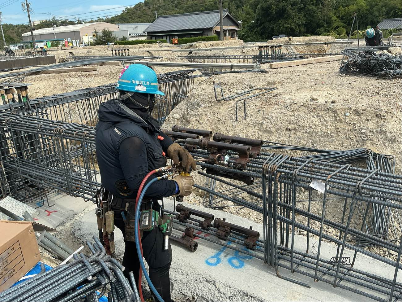 現在は基礎工事に着手しており、現場では鉄筋の組立作業が進んでいます。
